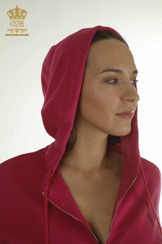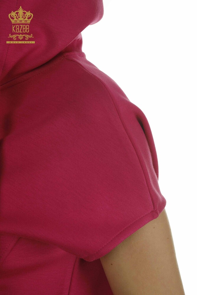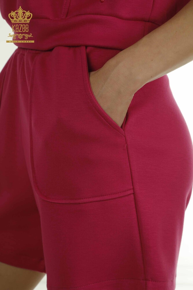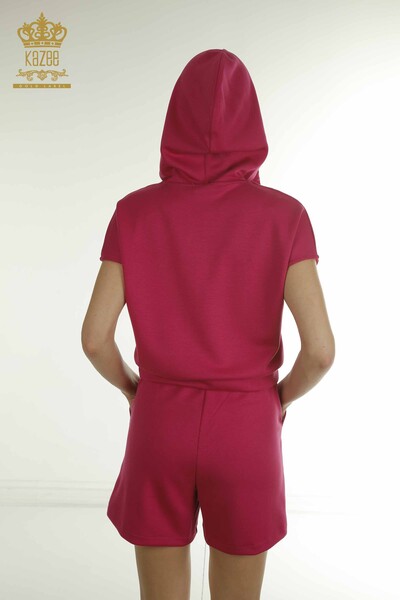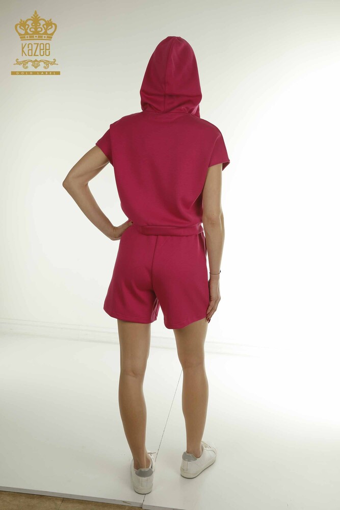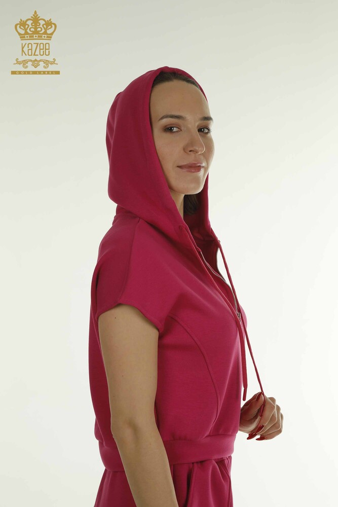 Wholesale Women's Tracksuit Set Short Sleeve Hooded Fuchsia - 17704 | KAZEE