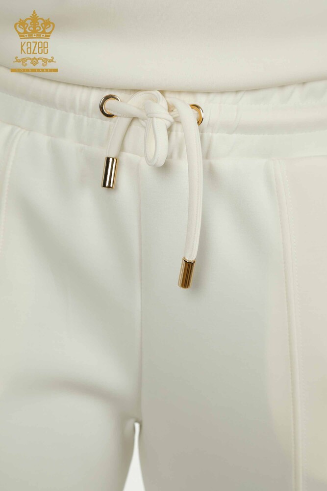 Wholesale Women's Tracksuit Set Hooded Pocket Button Detailed Ecru - 17627 | KAZEE