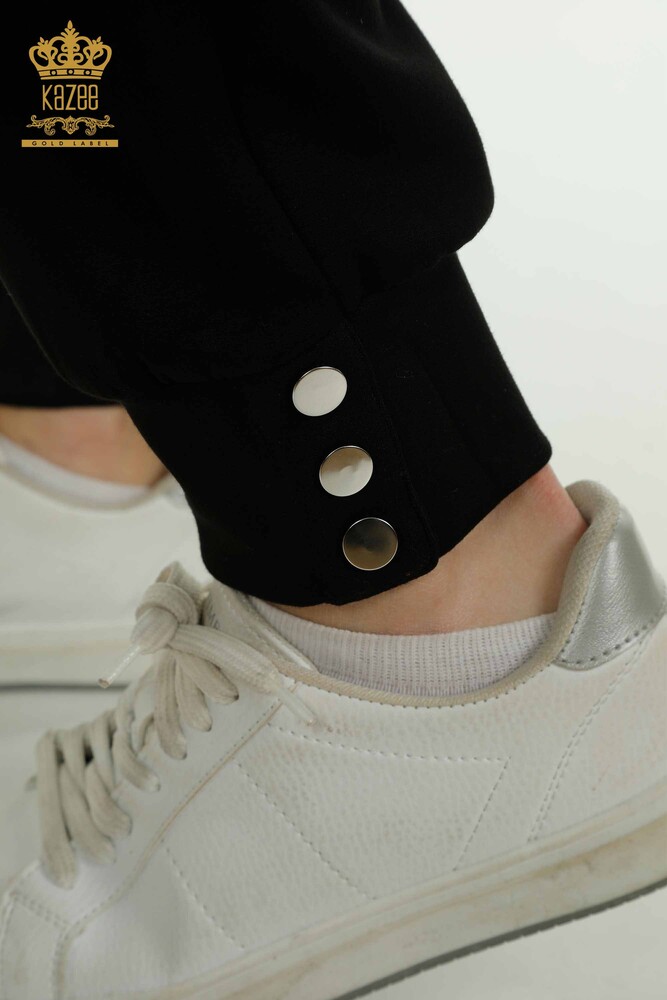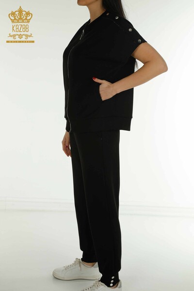 Wholesale Women's Tracksuit Set Short Sleeve Stone Embroidered Zippered Black - 17680 | KAZEE