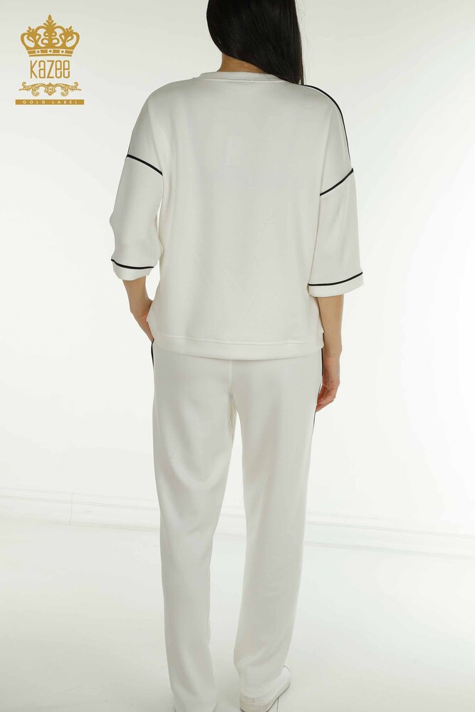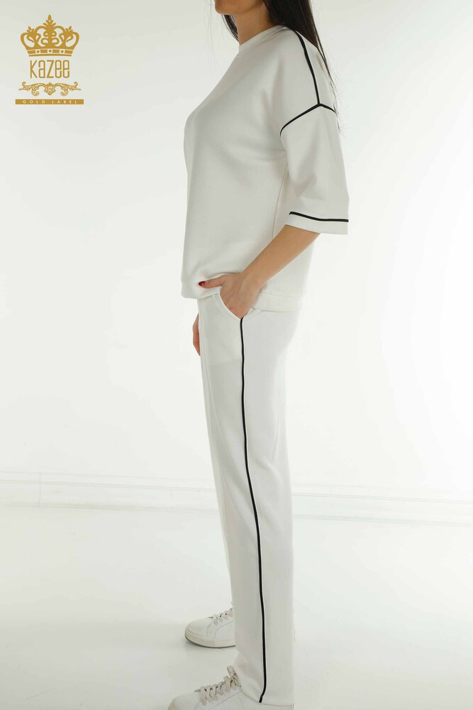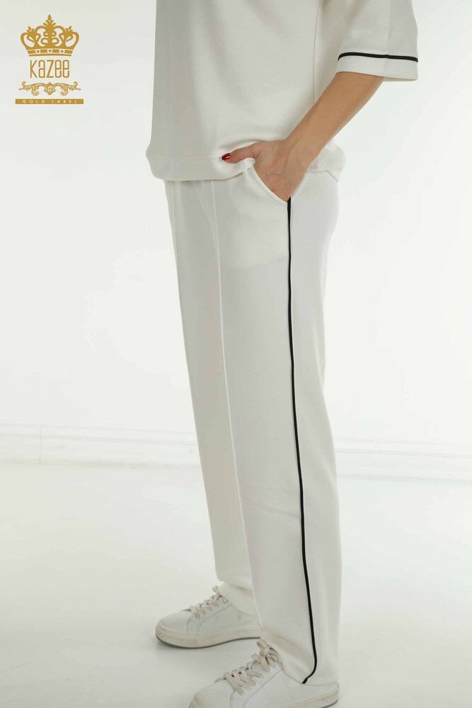 Wholesale Women's Tracksuit Set with Pockets Basic Short Sleeve Ecru - 17698 | KAZEE