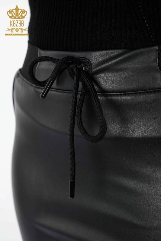 Hurtownia damskiej spódnicy skórzanej ze sznurkiem i kieszeniami - 4142 | KAZEE