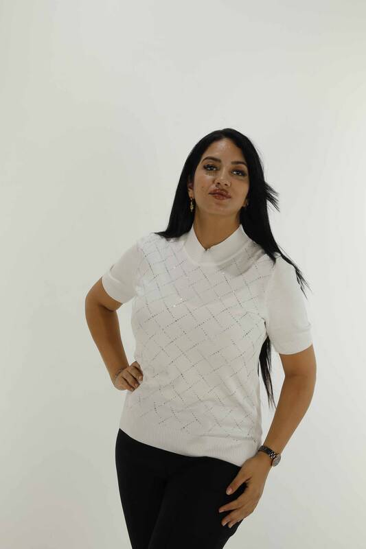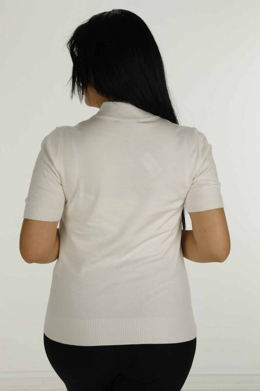 ملابس تريكو ذات ياقة عالية وأكمام قصيرة باللون الحجري إكرو - 30651 | كازي