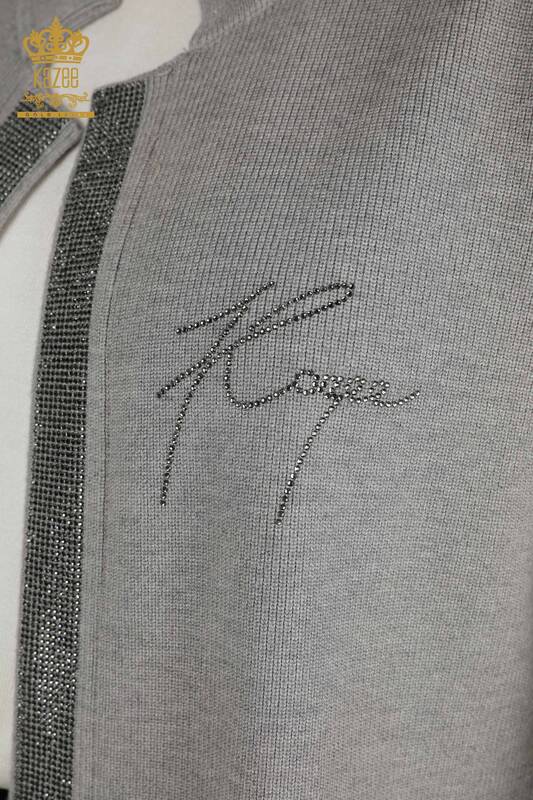 Женский короткий жилет с вышивкой камнями, серый оптом - 30409 | КАЗИ