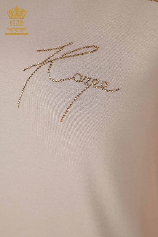 Оптовая Женская Блузка Вышитая Камнем Американская Модель Бежевая - 78857 | КАЗЕЕ