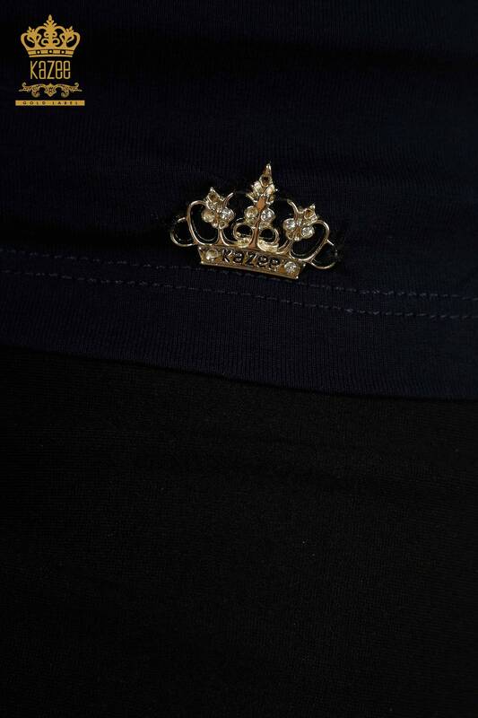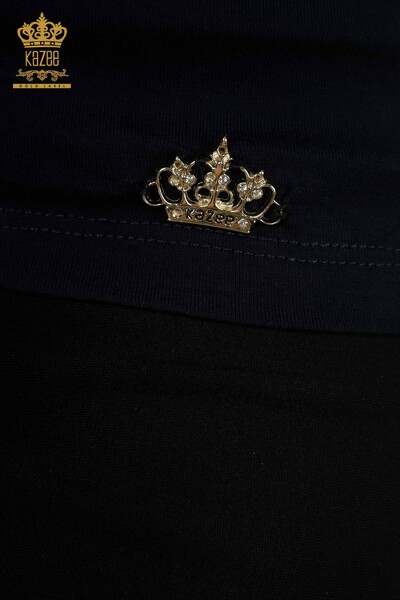 оптовая продажа женской блузки с нулевым рукавом и логотипом темно-синего цвета - 79312 | КАЗЕЕ