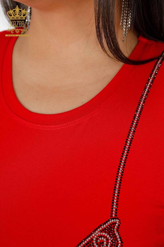 Оптовая Женская Блузка Вышитая Камнем Круглый Вырез Красная - 79000 | КАЗЕЕ