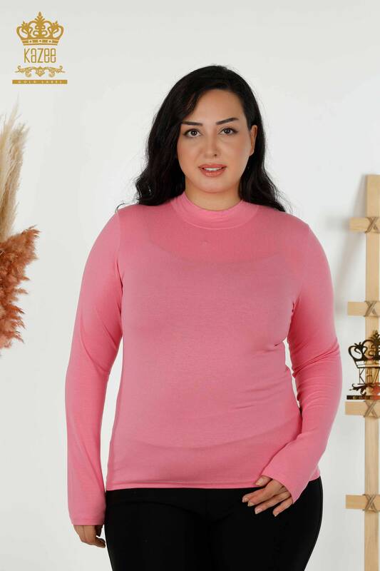оптом Женская блузка Basic Half Stand Collar Pink - 79258 | КАЗЕЕ