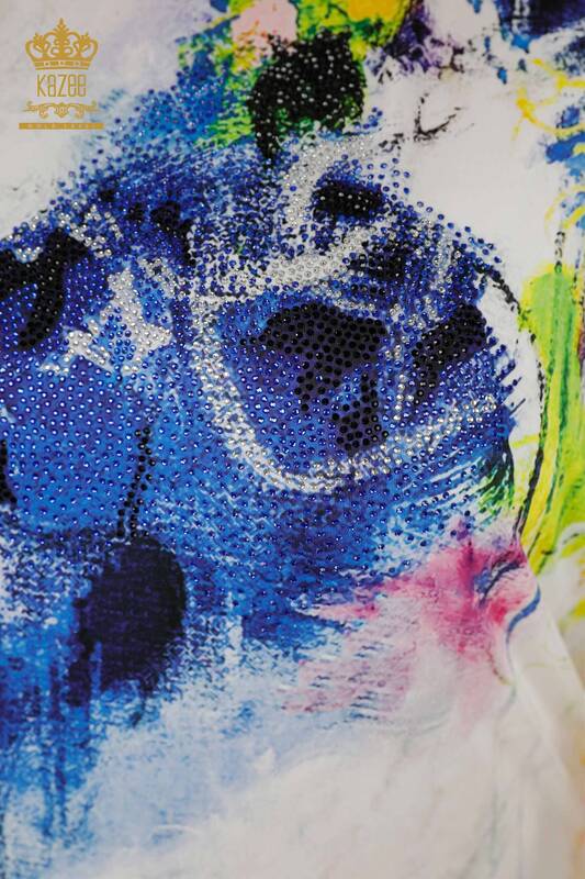 Женская блузка с цифровым принтом и вышивкой с коротким рукавом - 12088 | КАЗЕЕ
