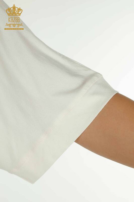 оптом Женская блузка с узором в виде листьев, вышитая камнем, экрю - 79090 | КАЗЕЕ