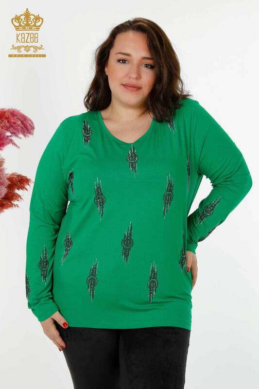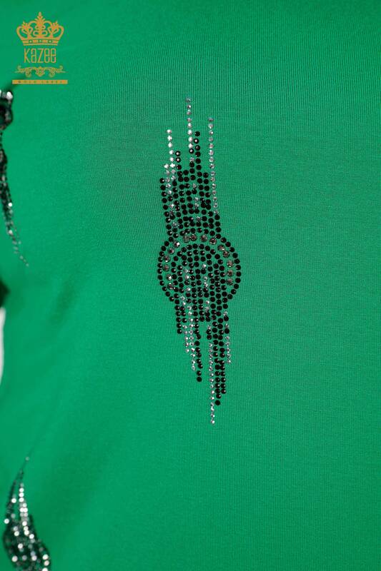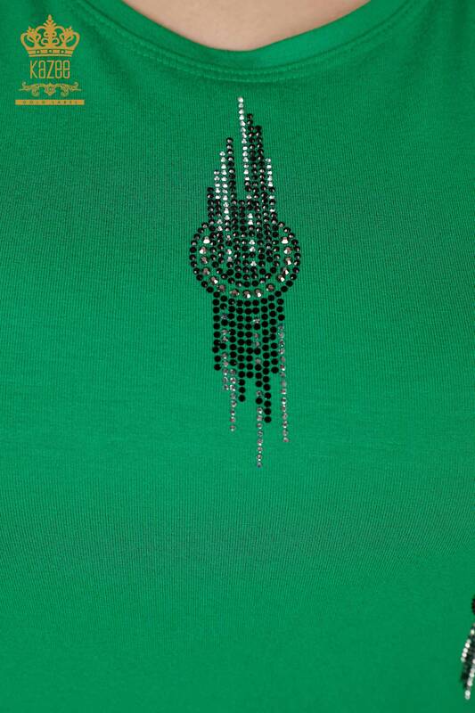 оптом Женская блузка с кристаллами и вышивкой из зеленого камня с узором - 79043 | КАЗЕЕ