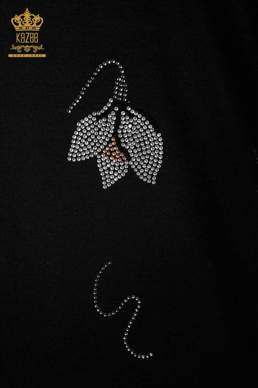 Оптовая Женская Блузка Американская Модель Цветочный Узор Камень Вышитый Черный - 78934 | КАЗЕЕ