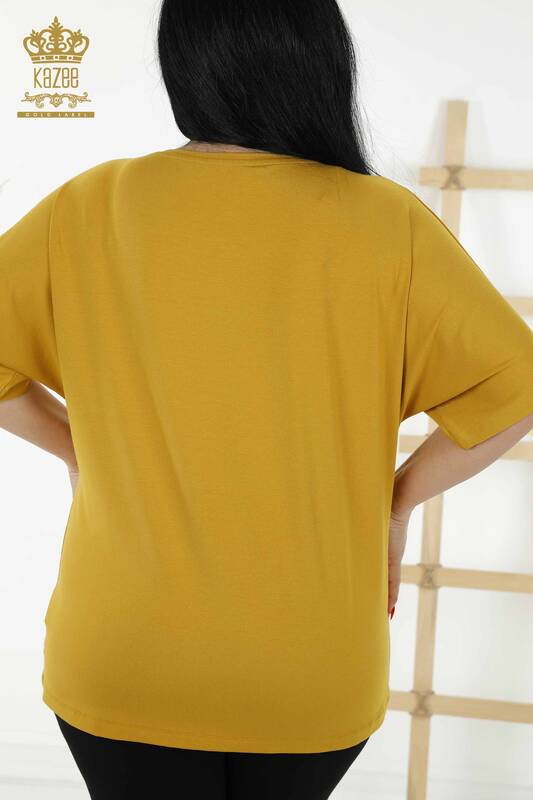 Женская блузка с цветочным узором и вышивкой шафраном оптом - 79089 | КАЗЕЕ