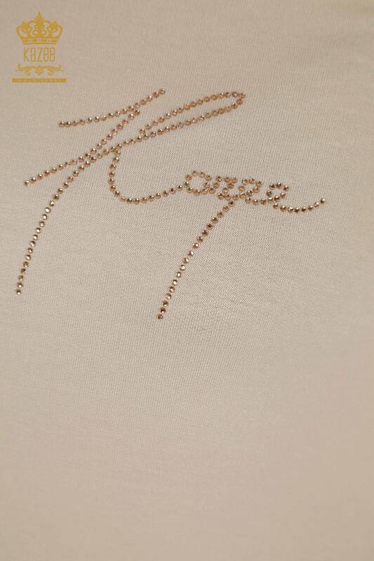 Женская блузка с V-образным вырезом, вышитая бежевым камнем, оптом - 79309 | КАЗЕЕ