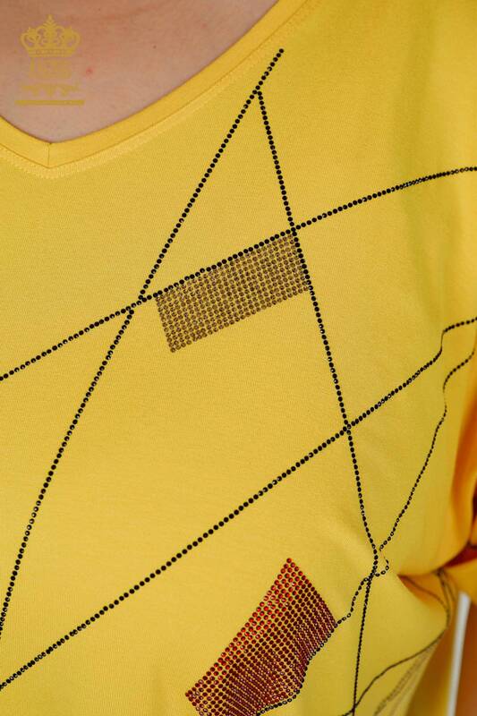 оптовая продажа женская блузка с V-образным вырезом и вышивкой с коротким рукавом желтая - 79320 | КАЗЕЕ