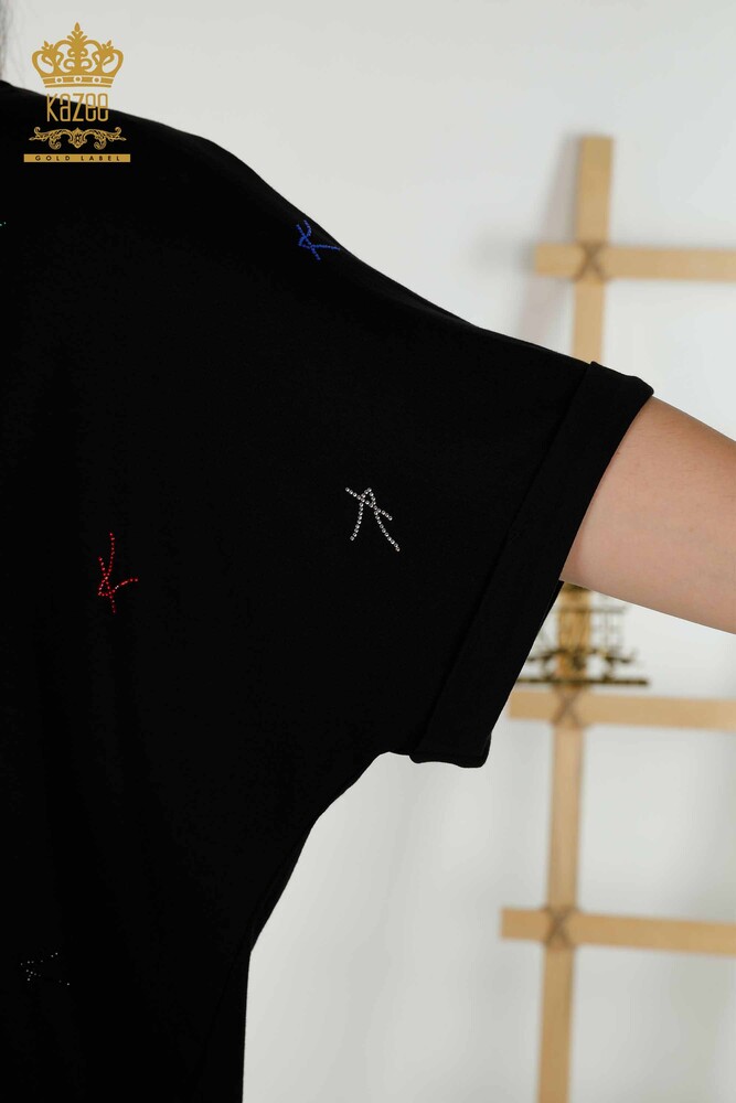 оптовая продажа женская блузка с круглым вырезом и вышивкой с коротким рукавом черный - 79333 | КАЗЕЕ