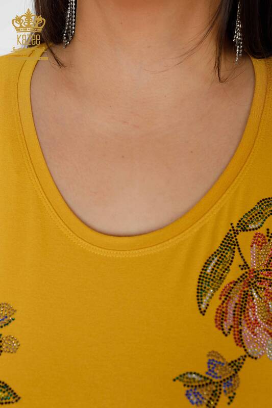 оптом Женская блузка с цветочным узором, вышитая камнем, шафран - 78965 | КАЗЕЕ