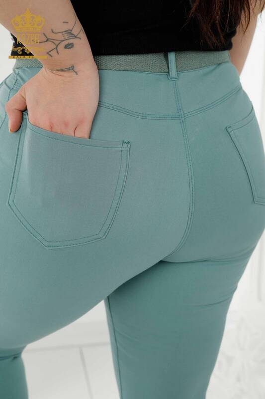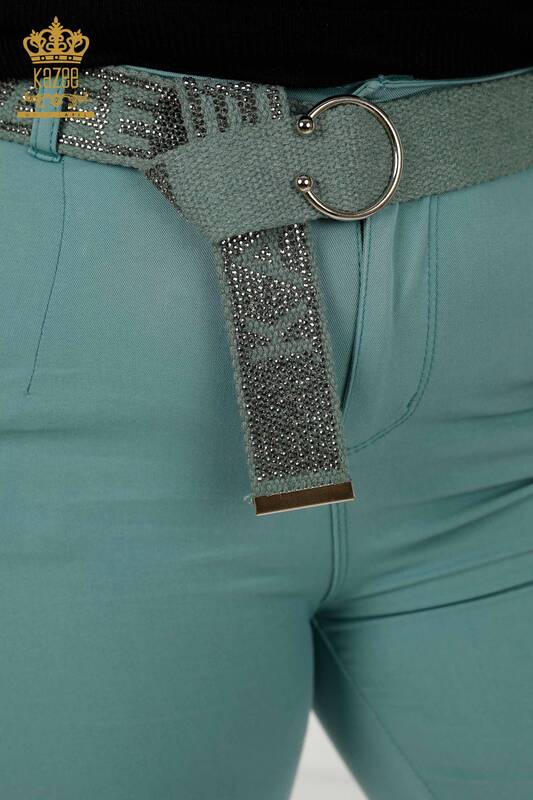 Женские джинсы оптом с поясом и вышивкой мятным камнем - 3468 | КАЗЕЕ