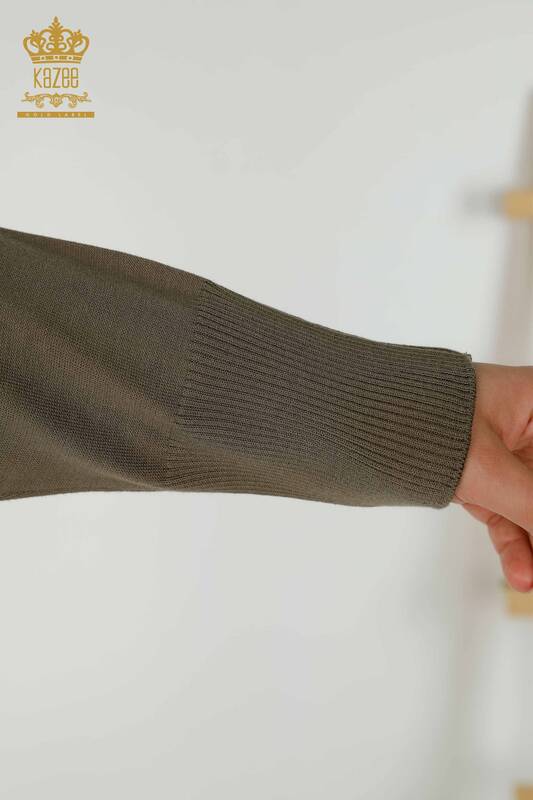 оптом женский трикотаж свитер с вышитым камнем на плече цветок подробно хаки - 16133 | КАЗЕЕ