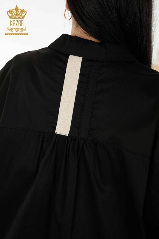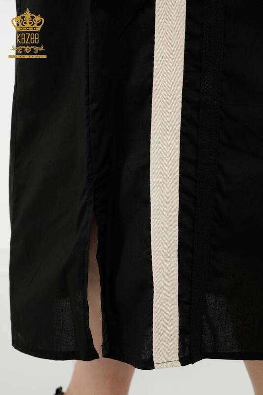 Оптовая Женское Платье Цветной Полосатый Карман Половина Кнопки Детальный Черный - 20380 | КАЗЕЕ