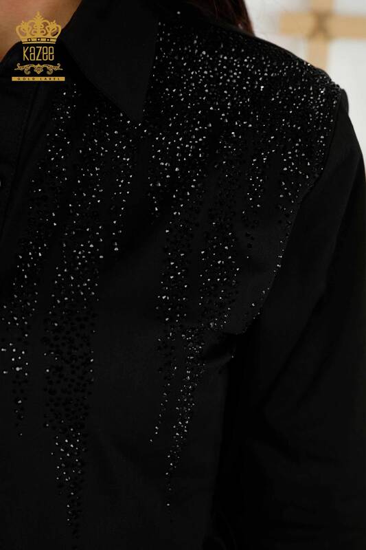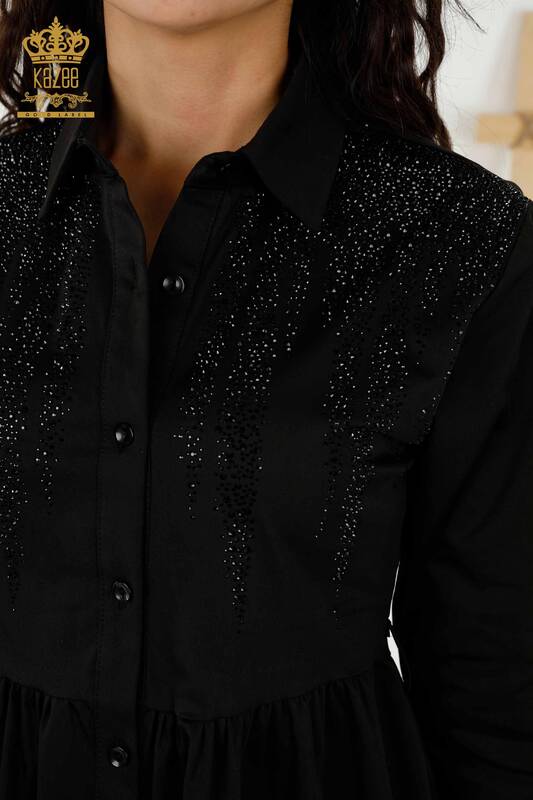 Женское платье оптом на пуговицах с вышивкой из хрусталя черного цвета - 20229 | КАЗЕЕ