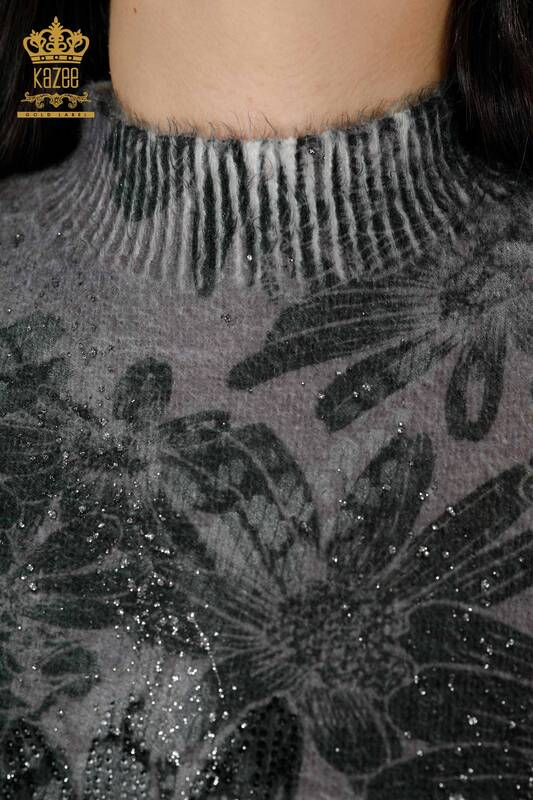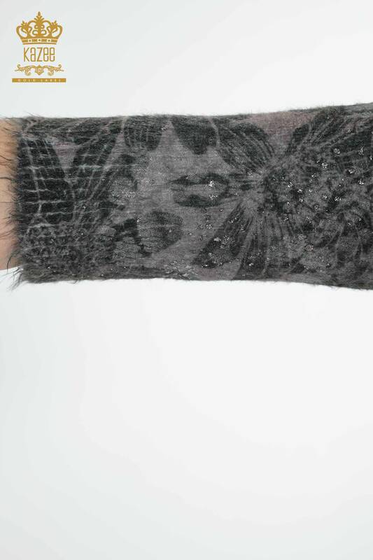 Женский свитер оптом, вышитый хрустальным камнем из ангорской норки с цифровой печатью - 16006 | КАЗЕЕ