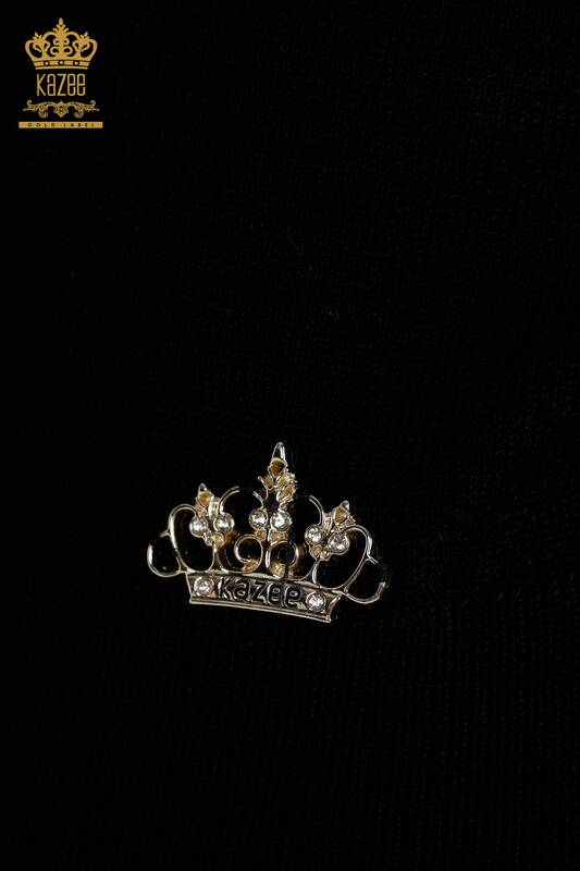 Женский вязаный свитер оптом с пуговицами на манжетах, базовый черный цвет - 30507 | КАЗИ