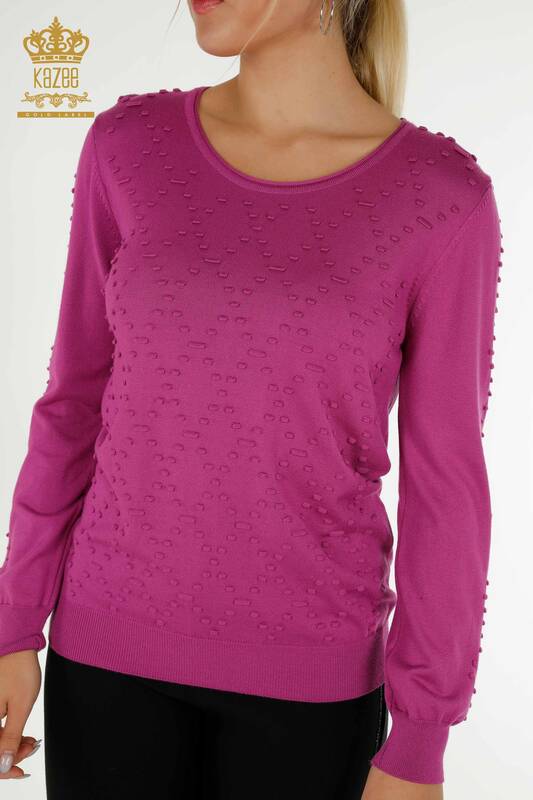 Женский вязаный свитер с круглым вырезом оптом фиолетовый - 30408 | КАЗИ