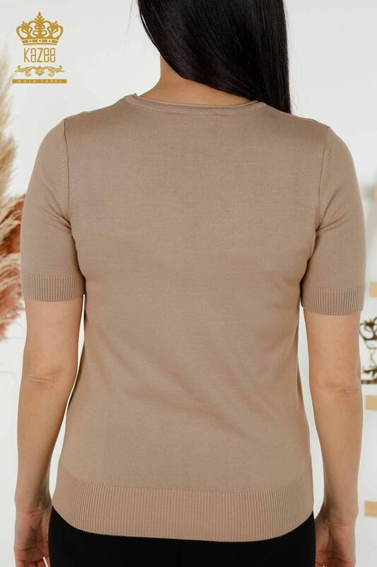 Оптовый Женский Трикотаж Свитер Американская Модель Базовый Логотип Бежевый - 15943 | КАЗЕЕ