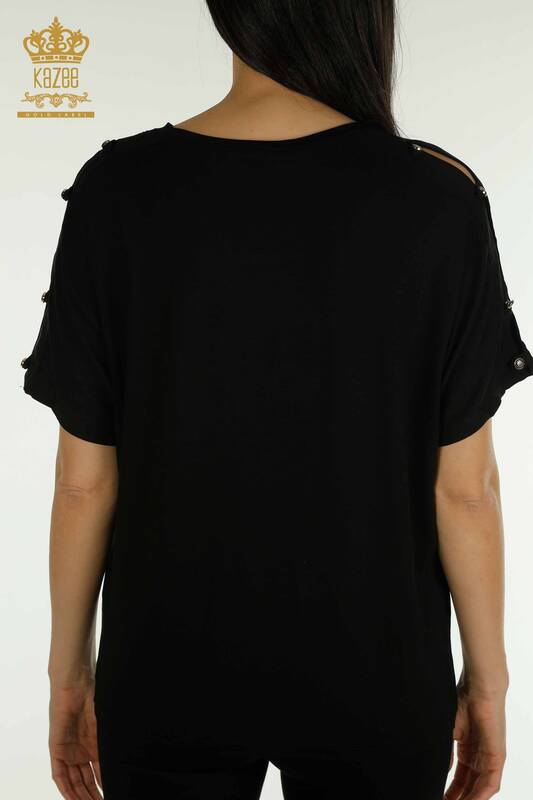 оптовая продажа женская блузка вышитая камнем плечевая пуговица подробный черный - 79221 | КАЗЕЕ