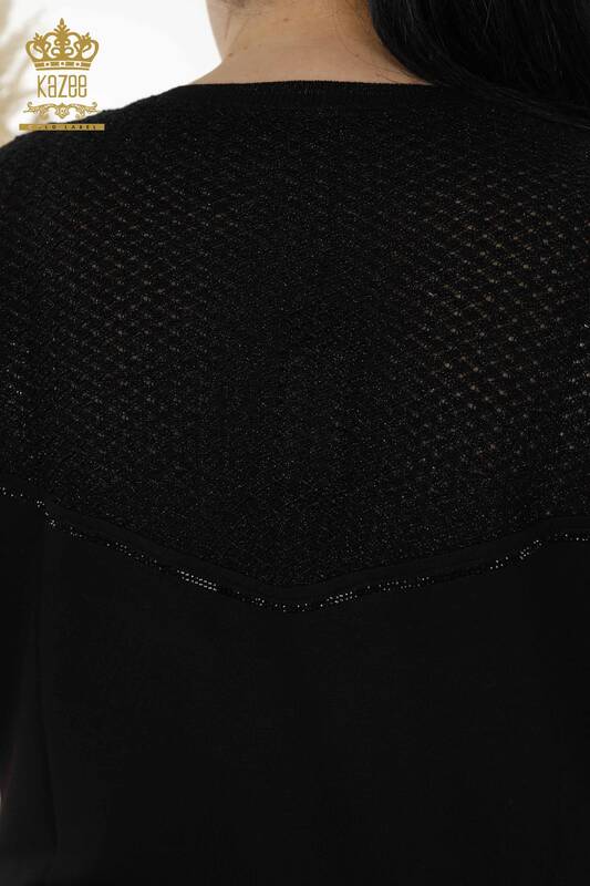 Оптовая Женская Блузка Вышитая Камнем С Коротким Рукавом Круглый Вырез Черный - 79235 | КАЗЕЕ