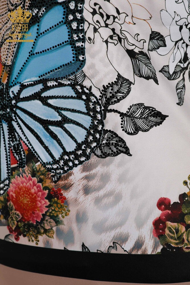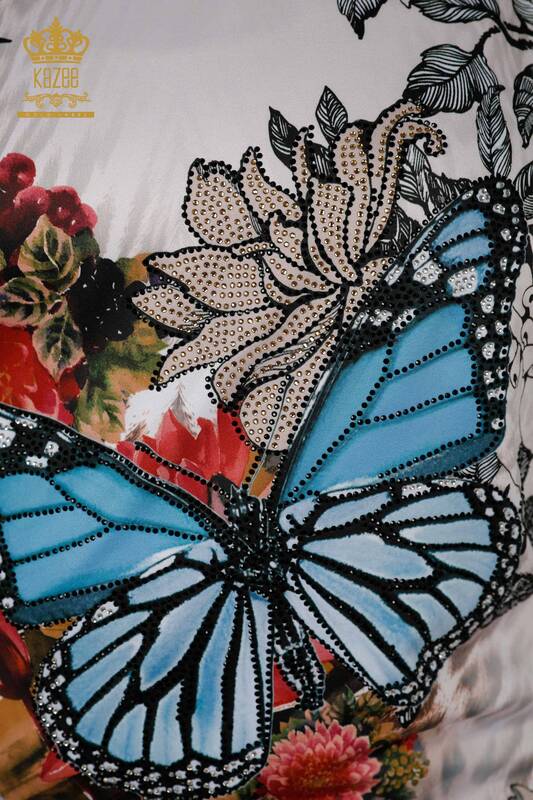 оптовая продажа Женская блузка с рисунком бабочки и коротким рукавом из норки, вышитая камнем - 12026 | КАЗЕЕ