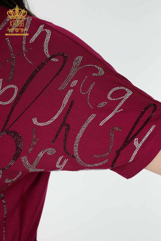Оптовая Женская Блузка Кристалл Камень Вышитые Письмо Подробный Фиолетовый - 78833 | КАЗЕЕ