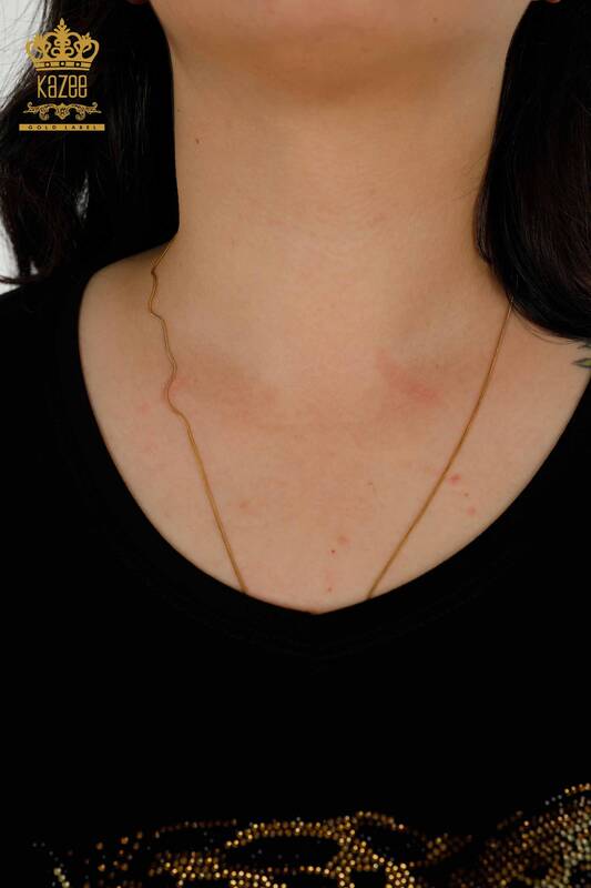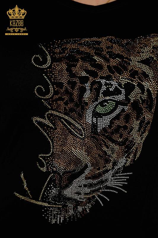 Оптовая женская блузка с леопардовым принтом, вышитая черным камнем - 79040 | КАЗЕЕ