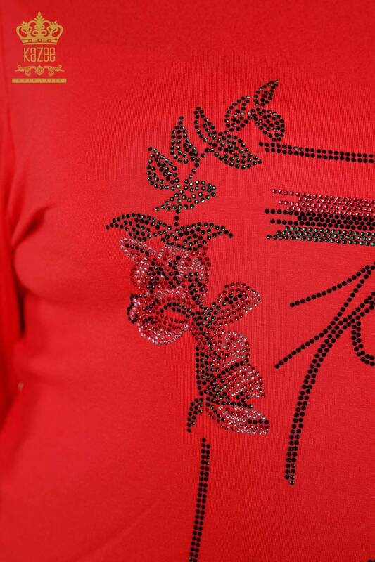 Оптовая Женская Блузка Цветочным Узором Камень Вышитый Цветок Граната - 79042 | КАЗЕЕ