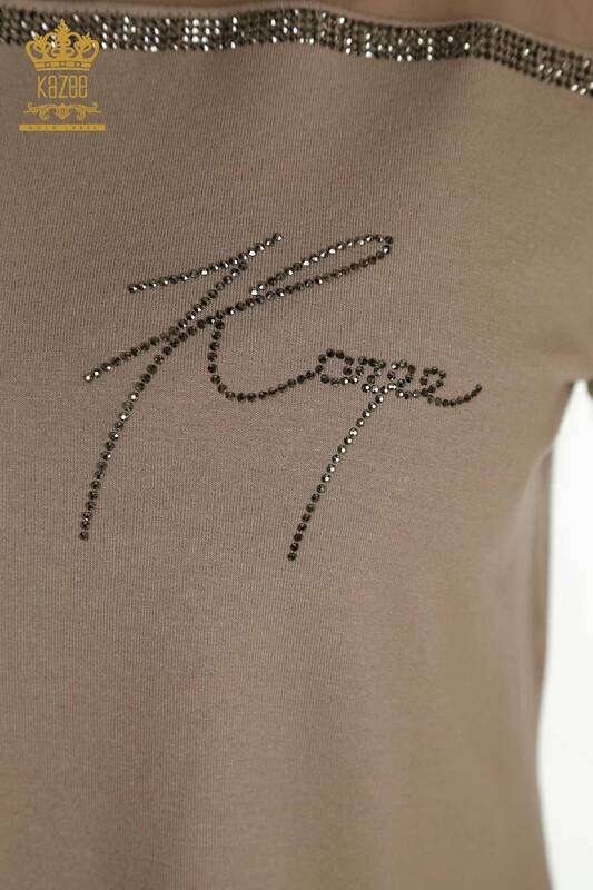 Оптовая Женская Блузка Американская Модель Тюль Подробная Вышитая Камнем Норка - 78996 | КАЗЕЕ