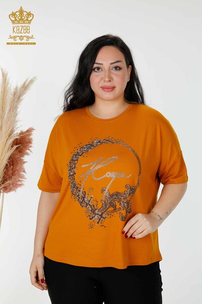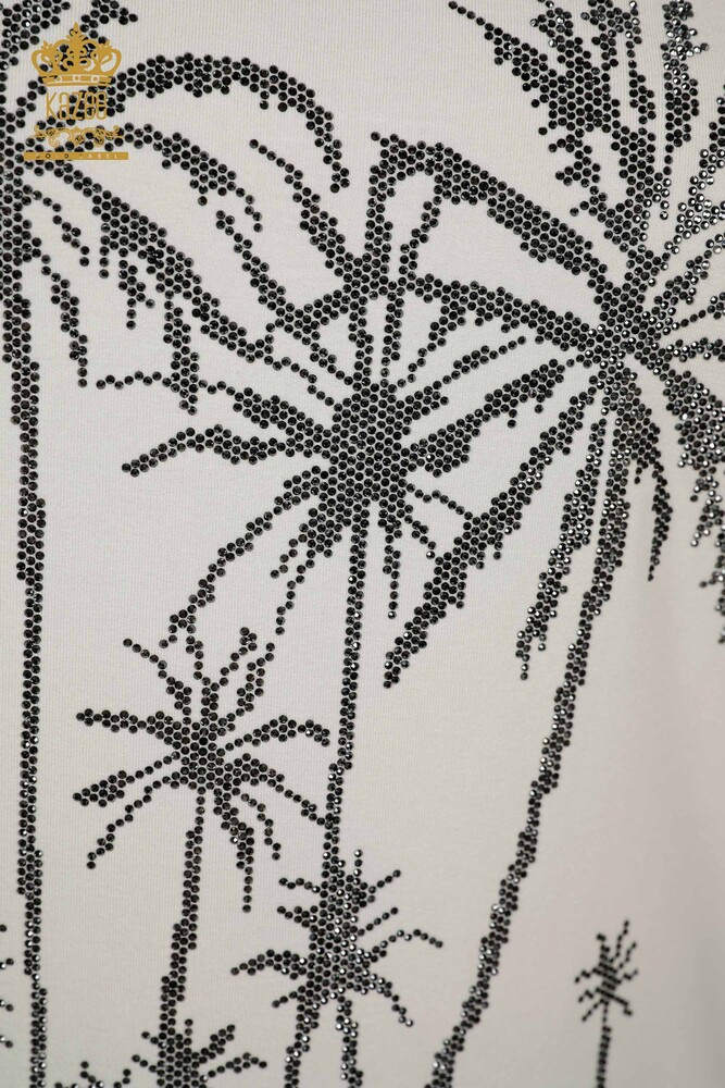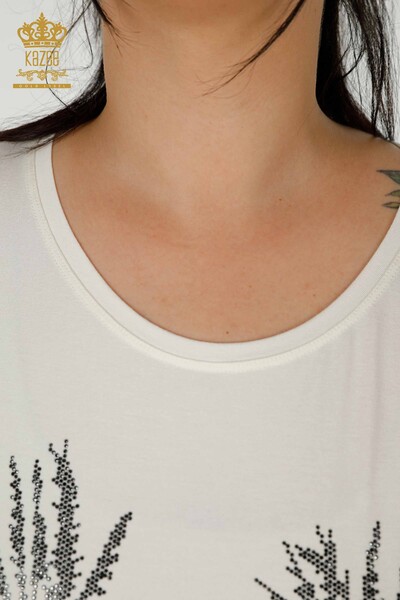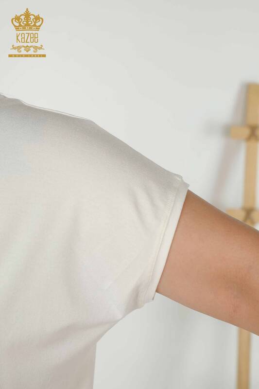оптом женская блузка с круглым вырезом и вышивкой с коротким рукавом цвета экрю - 79336 | КАЗЕЕ