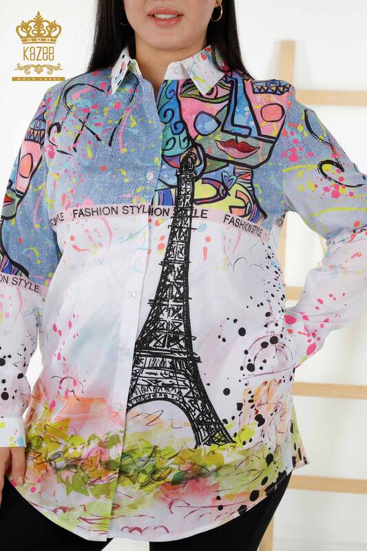 Женская рубашка с цифровой печатью и вышивкой оптом - 20362 | КАЗЕЕ