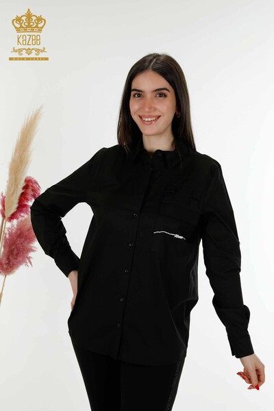 Рубашка женская оптом из тюля с детальной вышивкой камнем белого цвета - 20406 | КАЗЕЕ