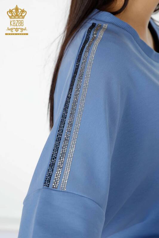 оптовый Женский Спортивный Костюм Тигровый Деталь Камень Вышитый Карманный Синий - 17459 | КАЗЕЕ