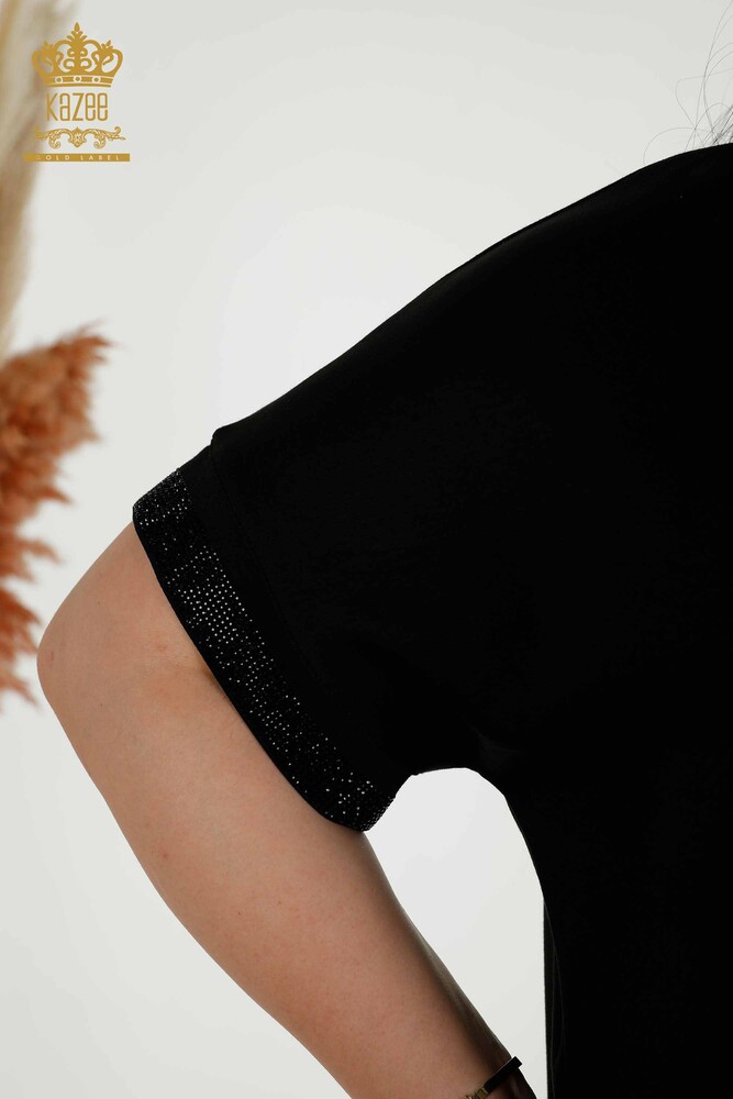 Женский Спортивный Костюм с Вышитым Камнем С Коротким Рукавом Черный - 20391 | КАЗЕЕ