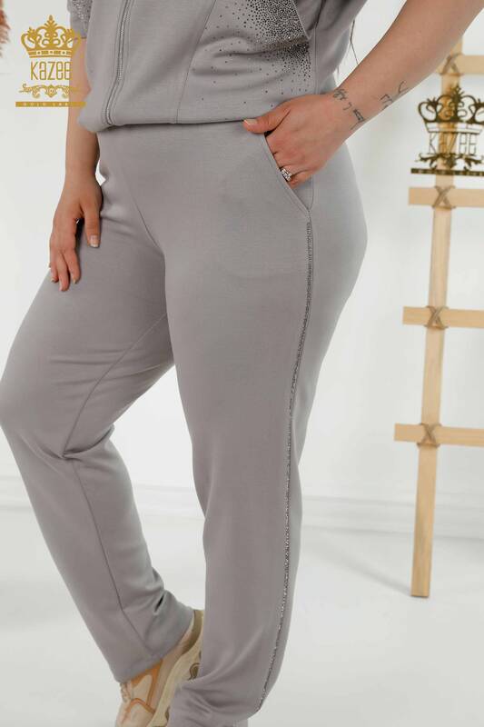 оптовый женский спортивный костюм с коротким рукавом на молнии с вышивкой из серого камня - 17547 | КАЗЕЕ