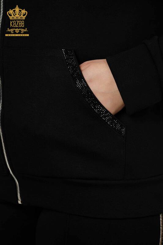 оптовый Женский Спортивный Костюм С Капюшоном Молния Камень Вышитый Черный - 17443 | КАЗЕЕ
