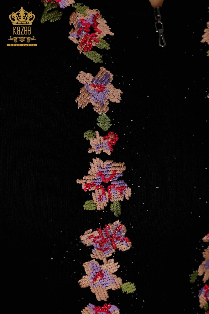 Женский спортивный костюм с цветочным узором, вышитый камнем, черный - 16658 | КАЗЕЕ