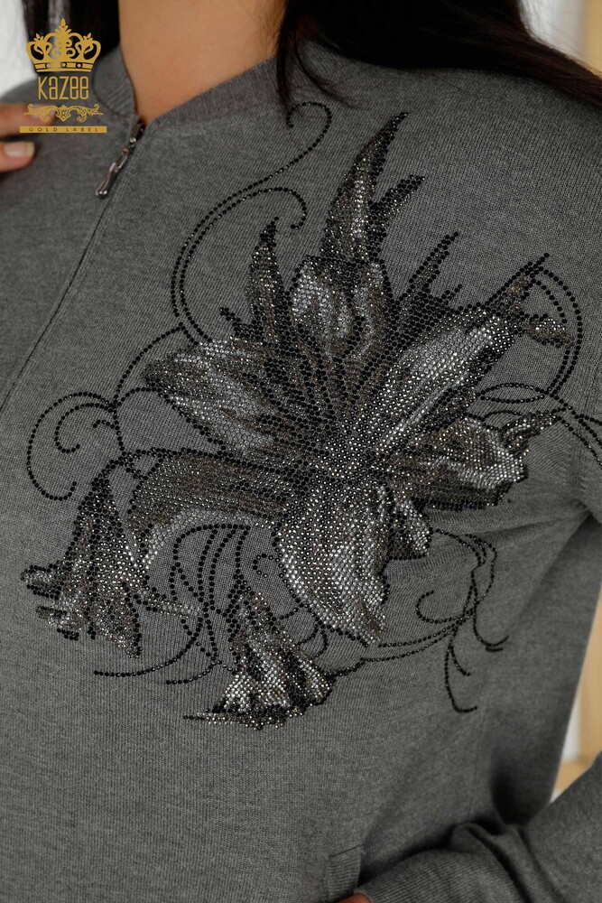 оптом женский спортивный костюм с цветочным узором карман на молнии серый - 16661 | КАЗЕЕ