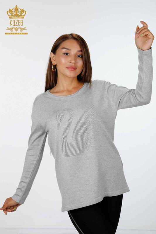 Женский трикотаж оптом круглый вырез вышивка лебедь с люрексом - 15847 | КАZЕЕ