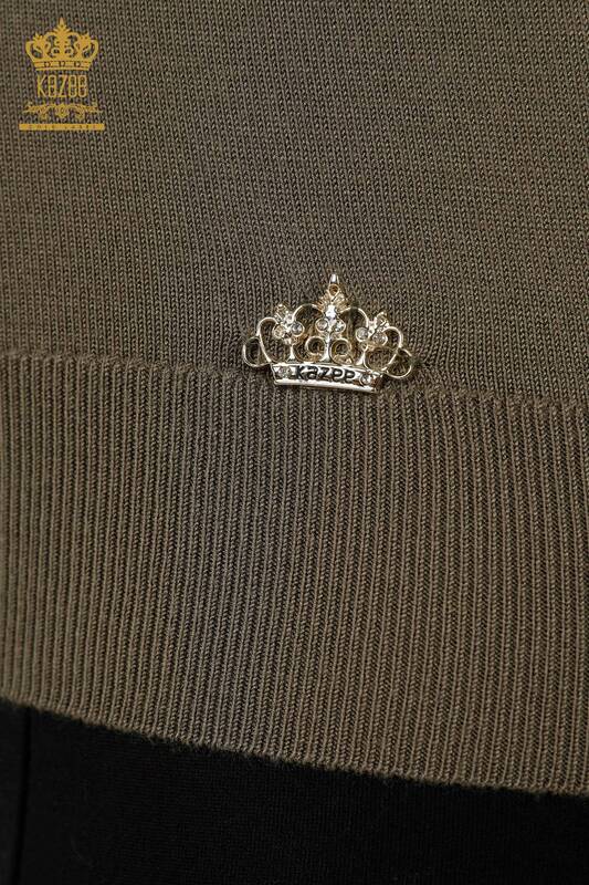 Оптовый Женский Трикотаж Свитер Базовый Логотип Круглый Вырез Хаки - 30213 | КАЗЕЕ