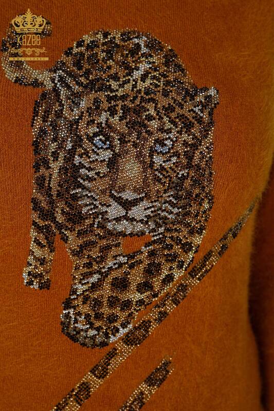 оптом Женский Трикотаж Свитер Вышитый Камнем Тигр Выкройка Ангорская Горчица - 18957 | КАЗЕЕ