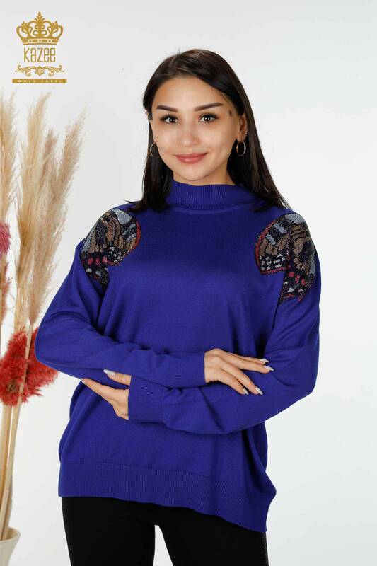 оптом женский трикотаж свитер бабочка узор цветной камень вышитые саксы - 30004 | КАЗЕЕ