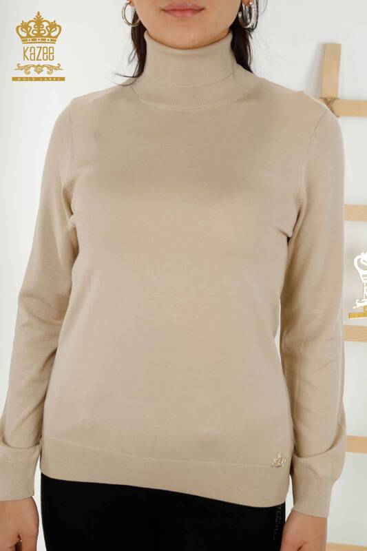 Оптовая Женский Трикотаж Свитер Водолазка Основной Логотип Светло-Бежевый - 11122 | КАЗЕЕ