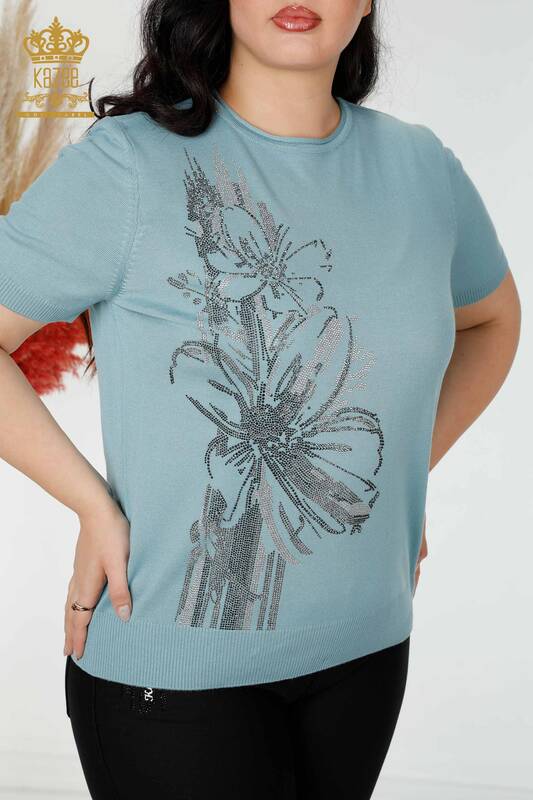 оптом Женский Трикотаж Свитер Вышитый Камнем Цветочный Узор Мяты - 16907 | КАЗЕЕ